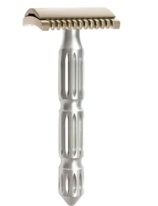 A escolha do tipo de safety razor não se limita apenas ao formato da cabeça. O material e o peso também influenciam muito na sensação do barbear.